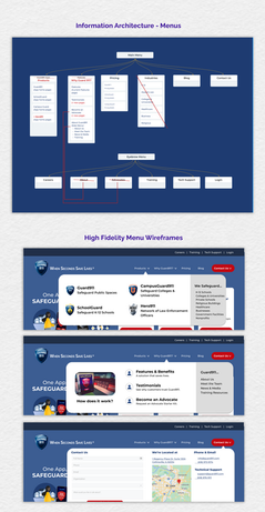 Served as the lead UX designer on a website refresh for an active shooter emergency alert app. Responsibilities included developing comprehensive information architecture, user personas, content inventories, sitemaps, user flows, navigation, and both low- and high-fidelity wireframes in Figma. Collaborated closely with content and web development teams to ensure a seamless user experience. In addition to UX, designed all new graphics for the website, including the main header image and mobile app mockups.